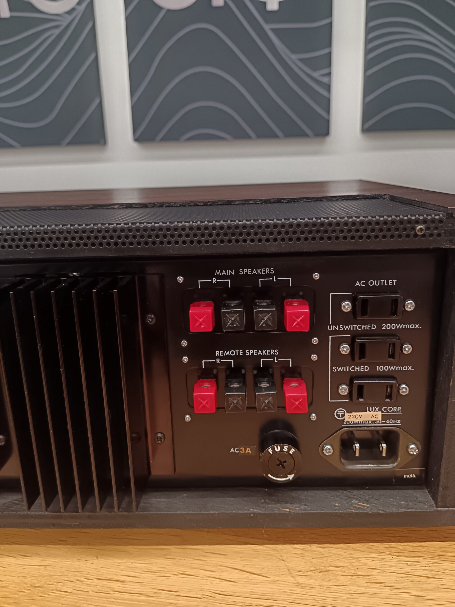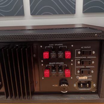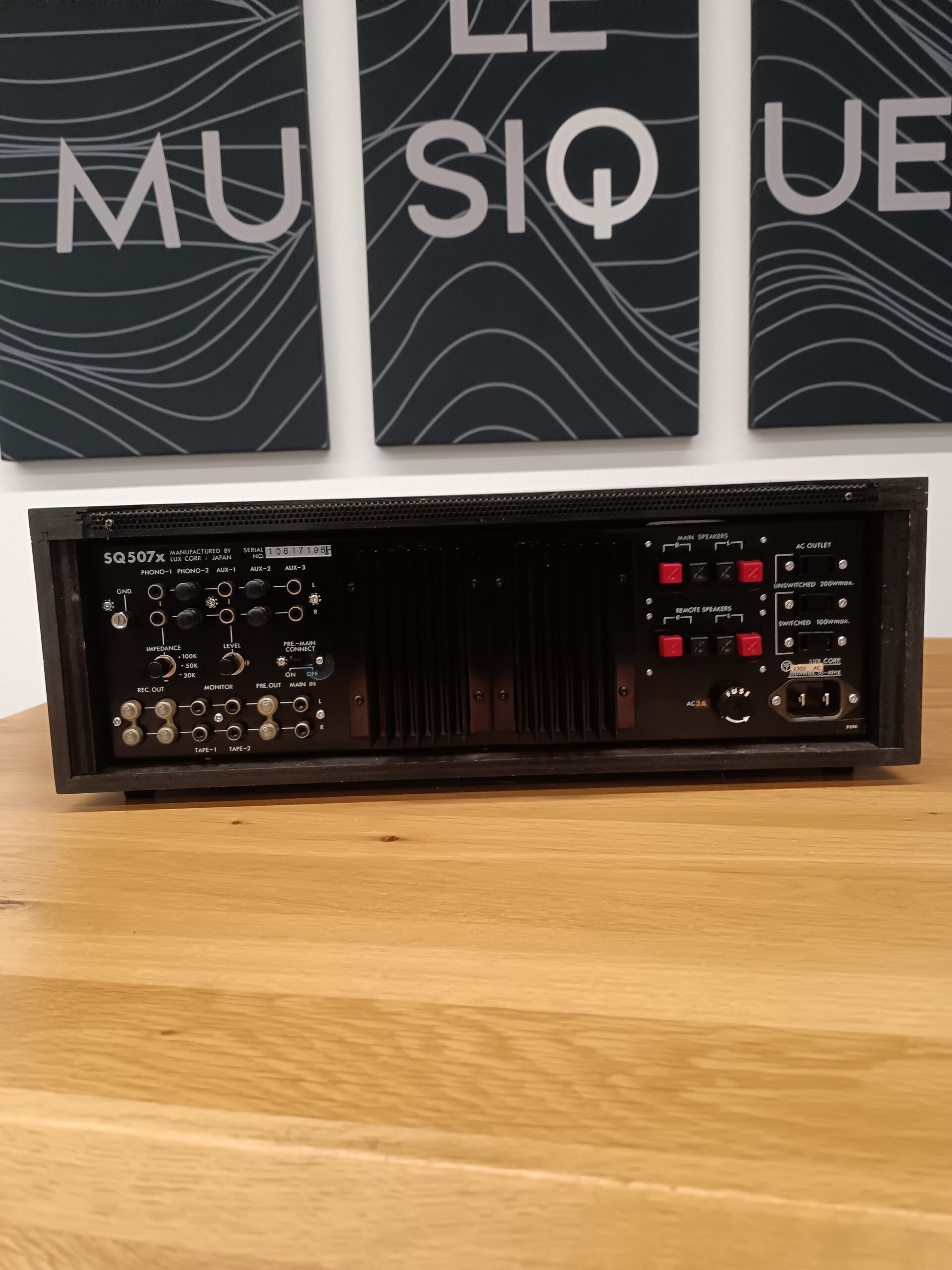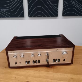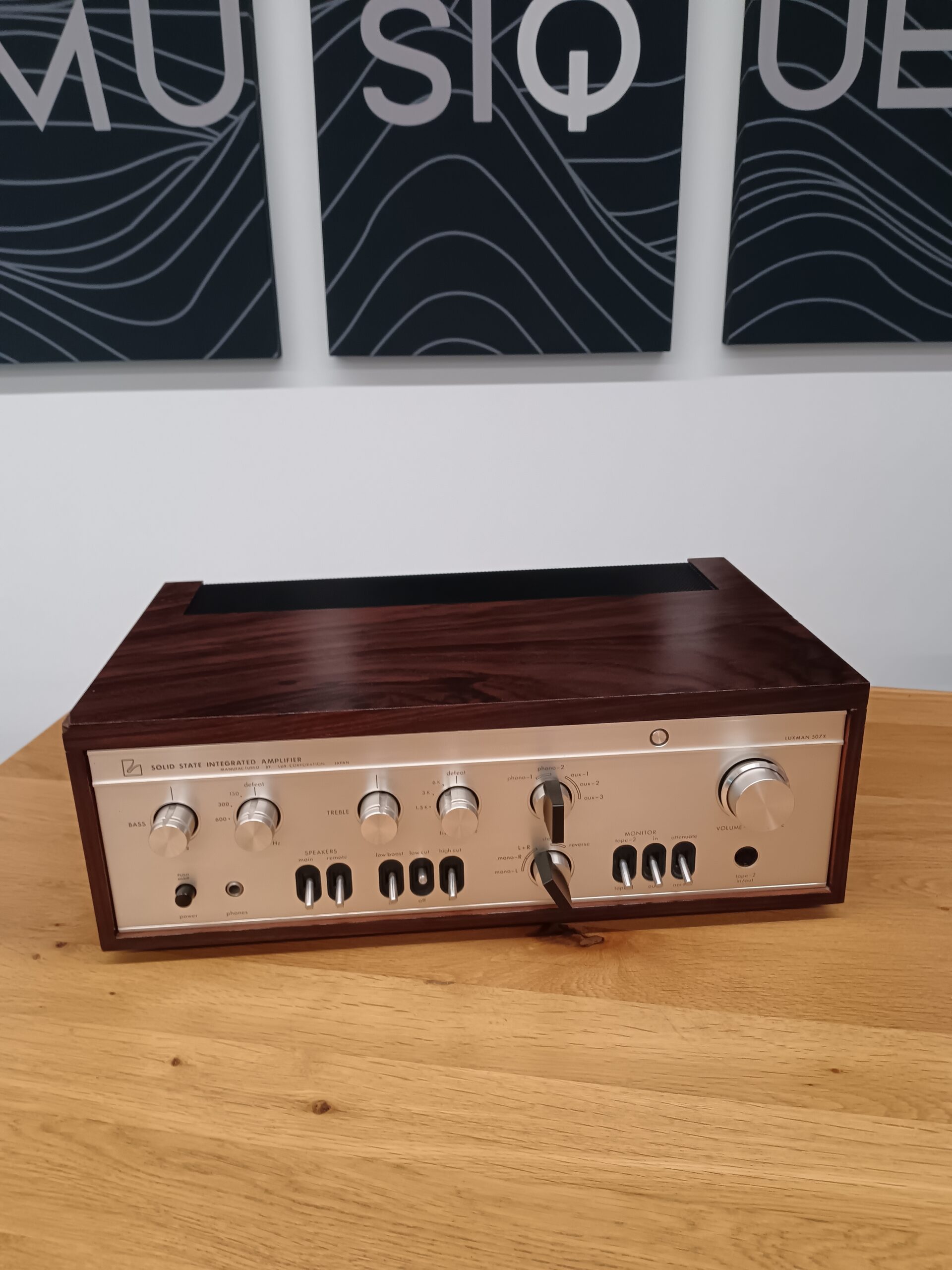 Amplificatore integrato della storica casa giapponese, 50 Watt x canale su 8Ohm, ingresso Phono MM e MC con carichi variabili, regolazione toni con filtri cutoff alte e basse frequenze, risposta in frequenza 10Hz – 60Khz, THD 0,04, 2 ingressi aux 1 tuner 1 tape 1 Din, rec out pre out tape out. frontale e retro in ottime condizioni, leggera sbeccata su spigolo anteriore alto sinistro e qualche segno sulla fiancata destra.